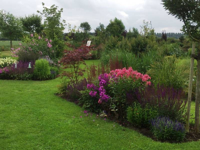 Een tuin met veel variatie, bloemen, grassen, vijvers, glaswerk en leuke zithoeken. Dus voor iedereen wat wils!